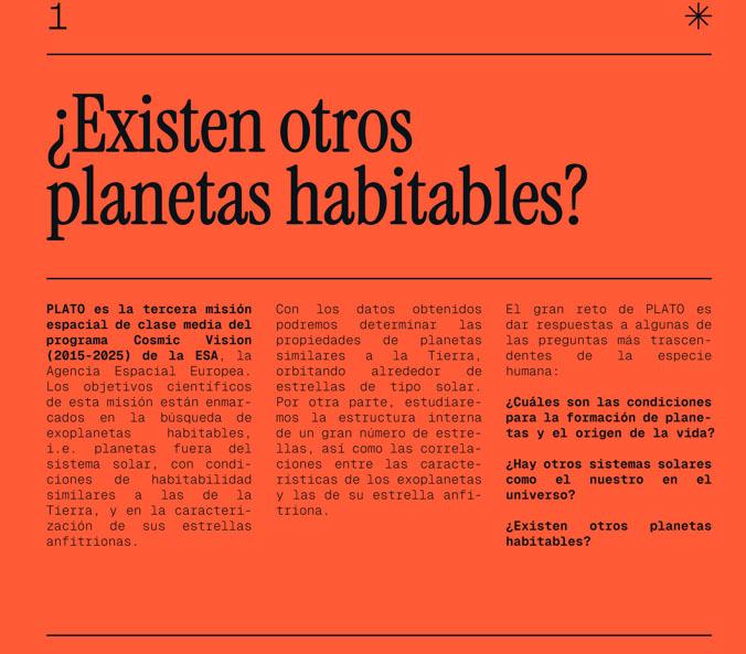 La muestra acerca al público uno de los grandes retos actuales de la astrofísica y la exploración espacial: la búsqueda y caracterización de exoplanetas similares a la Tierra. A través de paneles divulgativos, maquetas, modelos tridimensionales y piezas reales de ingeniería, la exposición presenta los objetivos científicos de la misión PLATO y el complejo desarrollo tecnológico que la hace posible, poniendo en valor la contribución española a esta misión europea.