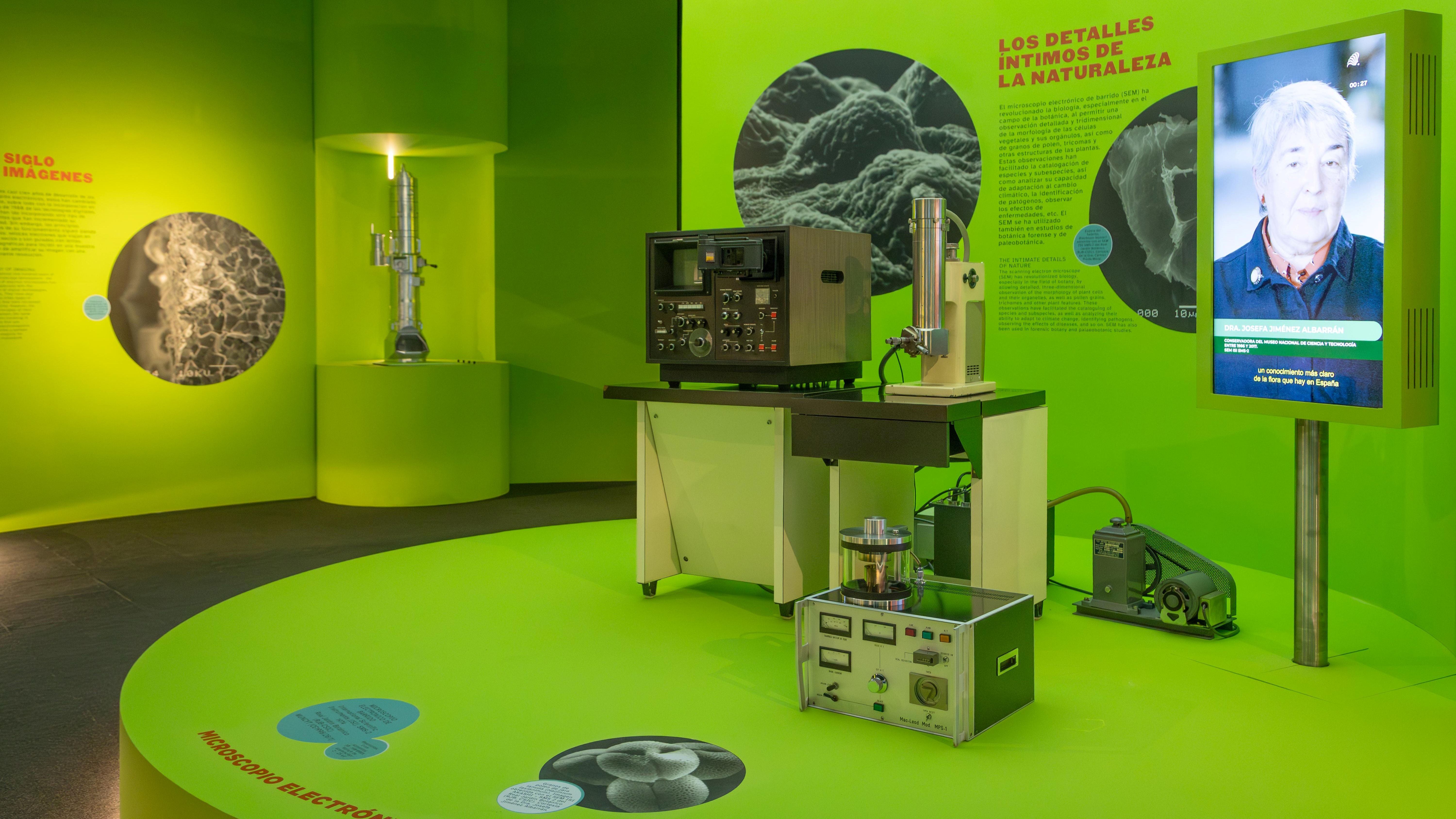 La exposición temporal “Gigantes para ver lo diminuto” propone un recorrido en torno a diez microscopios electrónicos que forman parte de la colección del Museo Nacional de Ciencia y Tecnología. Estos instrumentos científicos representan los inicios de la microscopía electrónica en España, técnica que actualmente se encuentra ampliamente integrada en universidades, centros y laboratorios de investigación. Desde la utilización de la luz en la microscopía óptica al uso del haz de electrones en los primeros microscopios electrónicos, se evidencia un abismo conceptual, tecnológico e industrial que ha supuesto notables beneficios para la sociedad, especialmente en el ámbito de la salud, cuyos progresos seguirán desvelándose en el futuro más próximo.