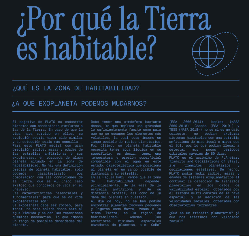 La muestra acerca al público uno de los grandes retos actuales de la astrofísica y la exploración espacial: la búsqueda y caracterización de exoplanetas similares a la Tierra. A través de paneles divulgativos, maquetas, modelos tridimensionales y piezas reales de ingeniería, la exposición presenta los objetivos científicos de la misión PLATO y el complejo desarrollo tecnológico que la hace posible, poniendo en valor la contribución española a esta misión europea.